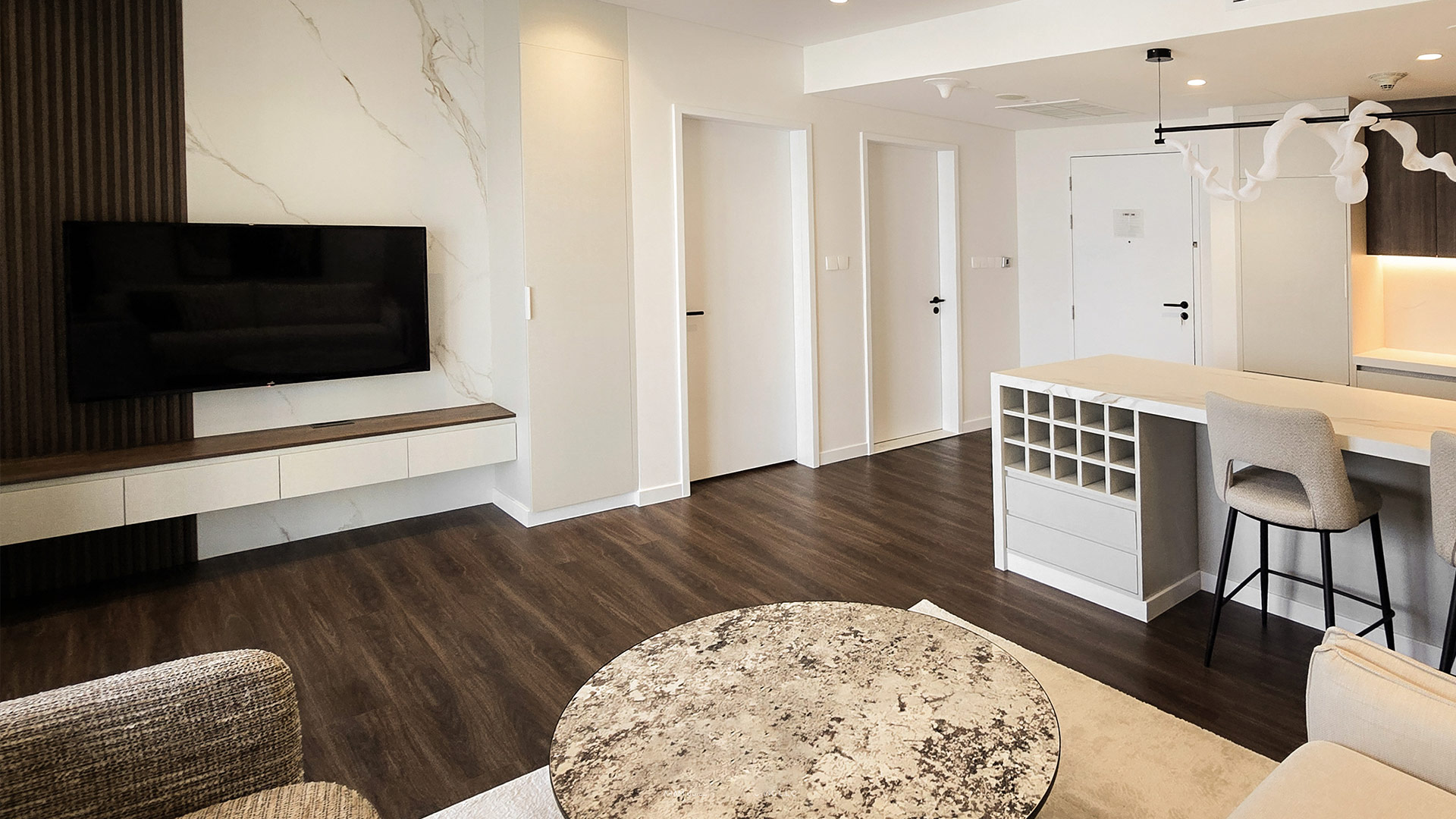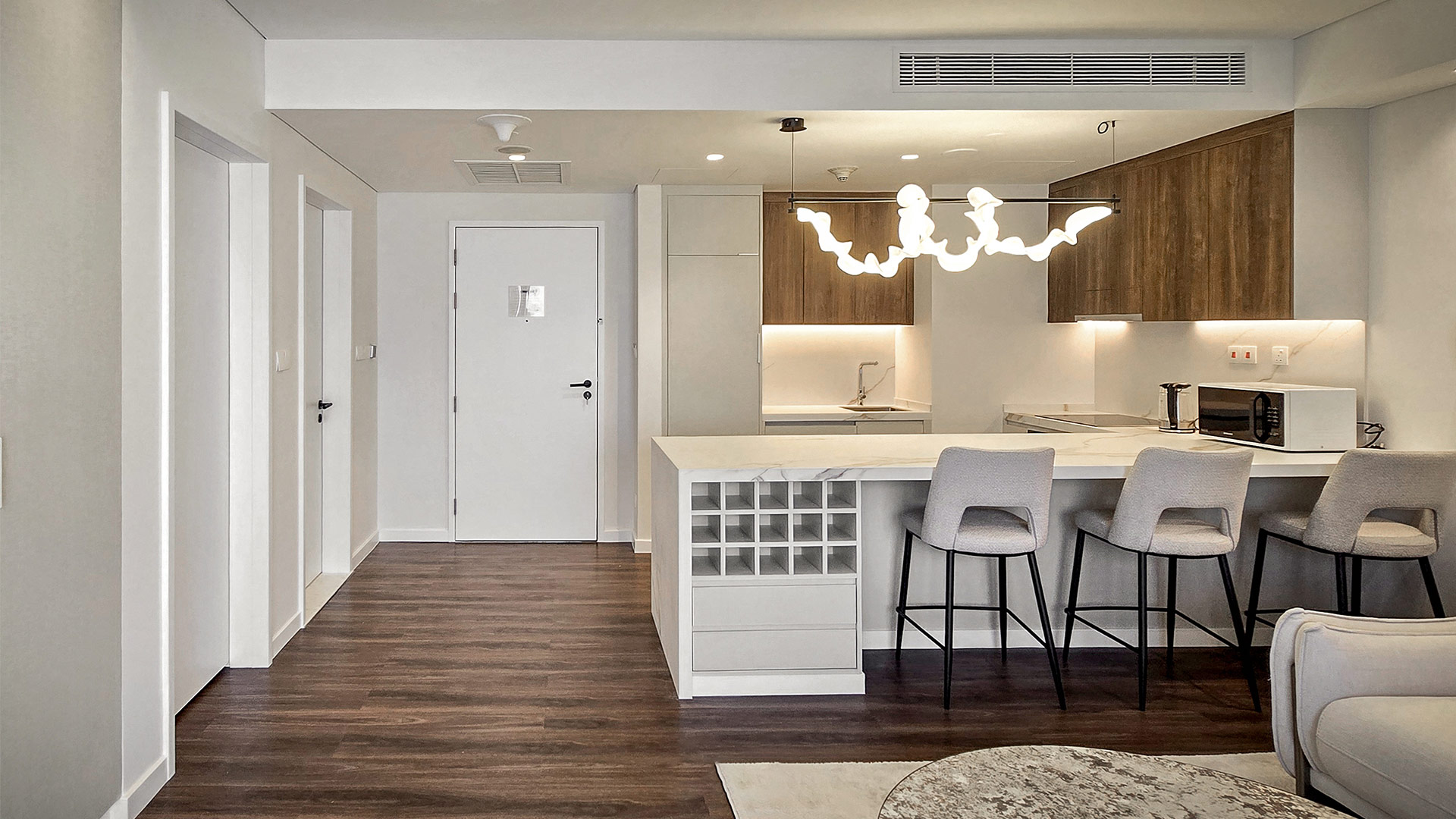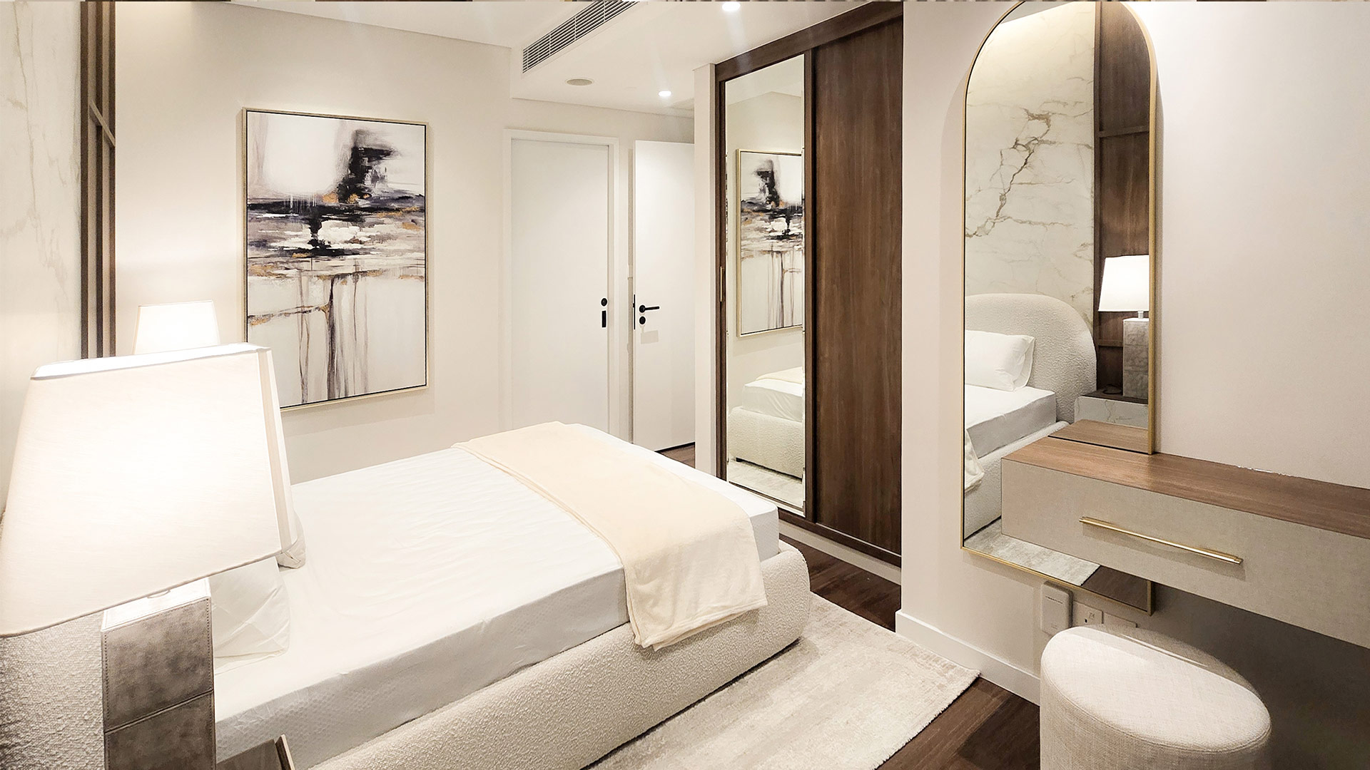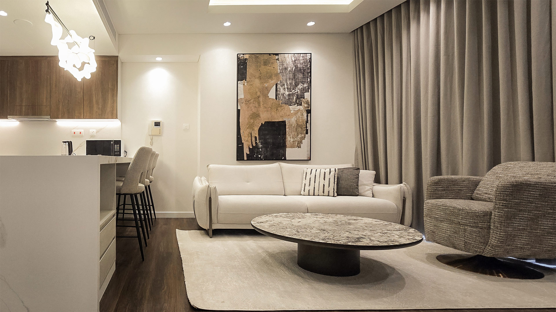 This interior design project within the prestigious Address Fashion Avenue in Downtown Dubai offers a sophisticated blend of modern aesthetics and comfortable living. Our design focused on creating a seamless flow between the open-plan living and kitchen areas, optimizing space while maintaining an air of refined elegance. With a neutral palette, warm wooden accents, and contemporary furnishings, every detail was carefully chosen to complement the dynamic urban setting and provide a serene, stylish retreat for our client.